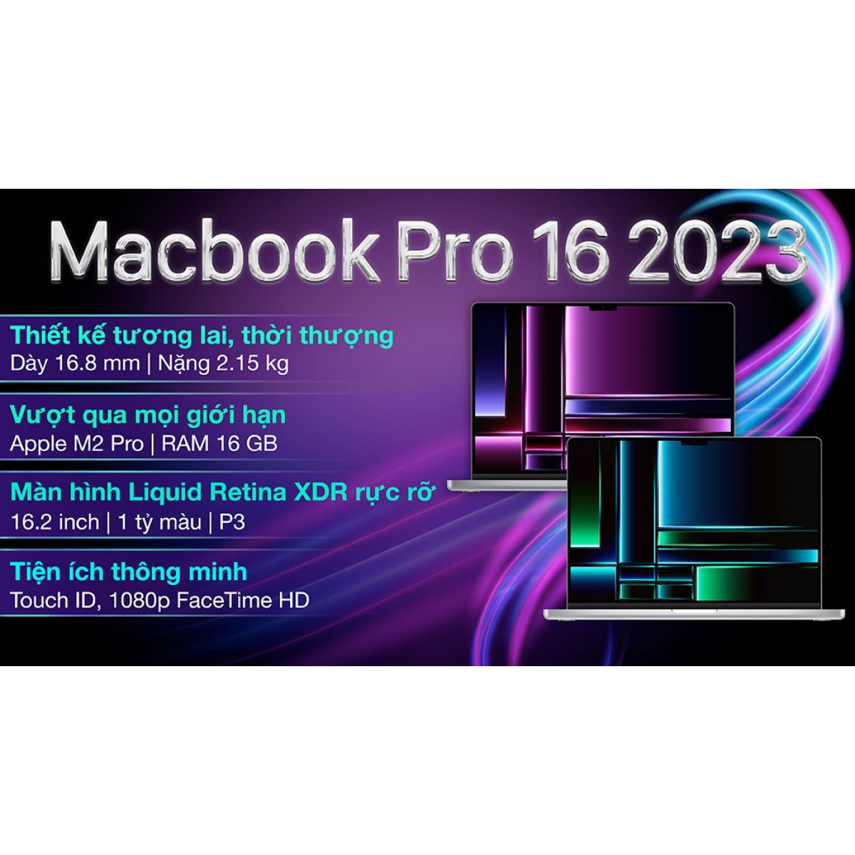 Apple vừa giới thiệu đến người dùng chiếc MacBook Pro 16 inch M2 Pro 2023 có kiểu dáng mỏng nhẹ nhưng bên trong là một hiệu năng vô cùng mạnh mẽ đáp ứng được mọi tác vụ, hứa hẹn sẽ trở thành một người bạn đồng hành tuyệt vời trong công việc, học tập và giải trí.